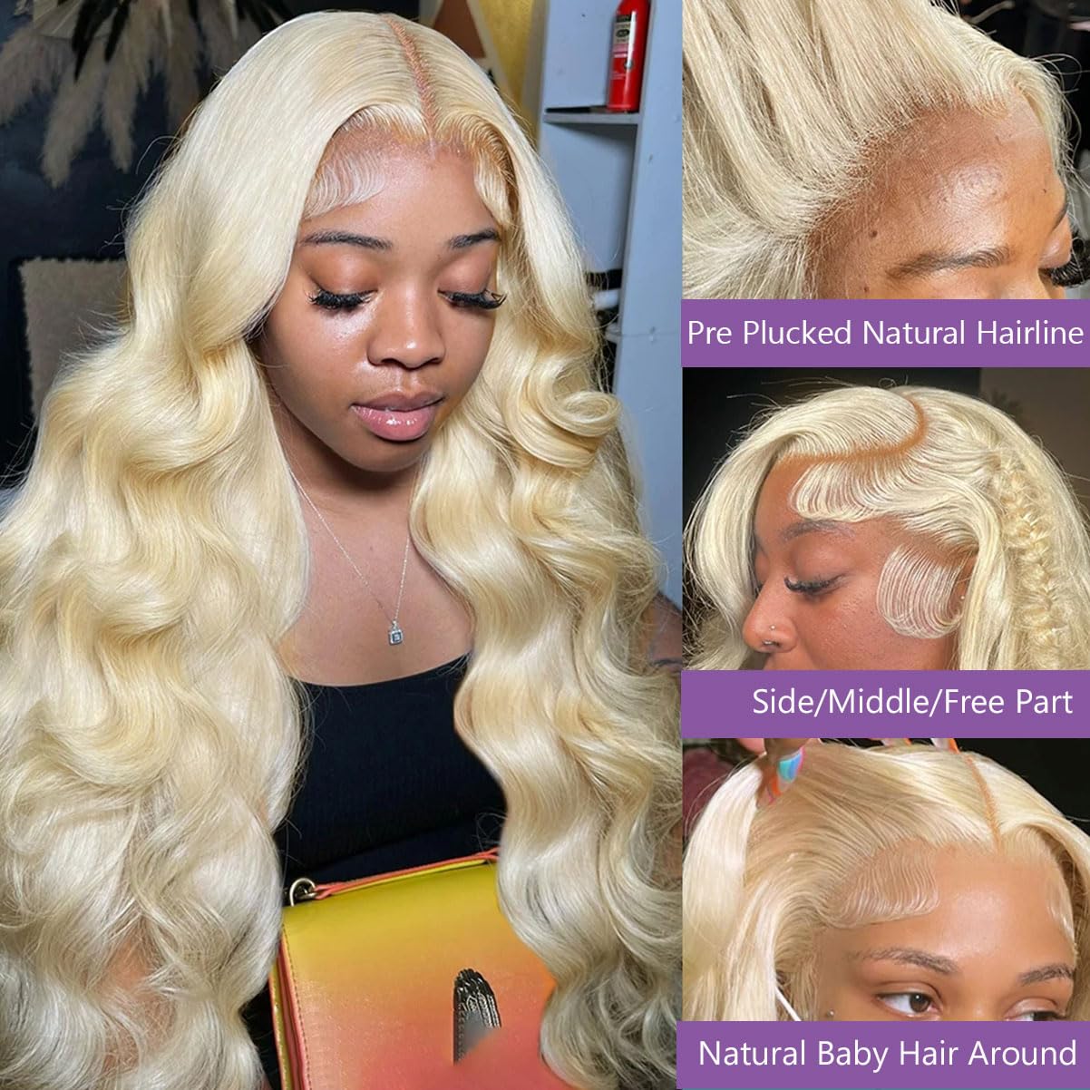 Blonde Wig Human Hair Convenient Styling: The 2-inch lace at the back allows for stylish ponytails. The lace is curved and fits the human head better,With 4 clips and adjustable straps, our wig stays securely in place, perfect for any occasion.