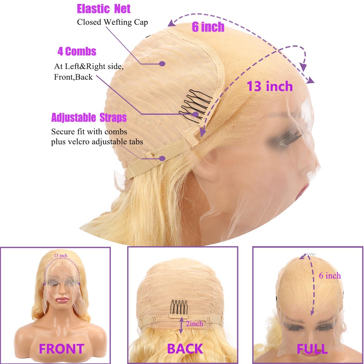 Blonde Wig Human Hair Comfortable Fit: Designed with a half machine weft and half handwoven construction, our wig ensures a snug and comfortable fit. The adjustable elastic net cap accommodates head circumferences ranging from 21.5 to 22.5 inches, offering a secure and personalized wearing experience.