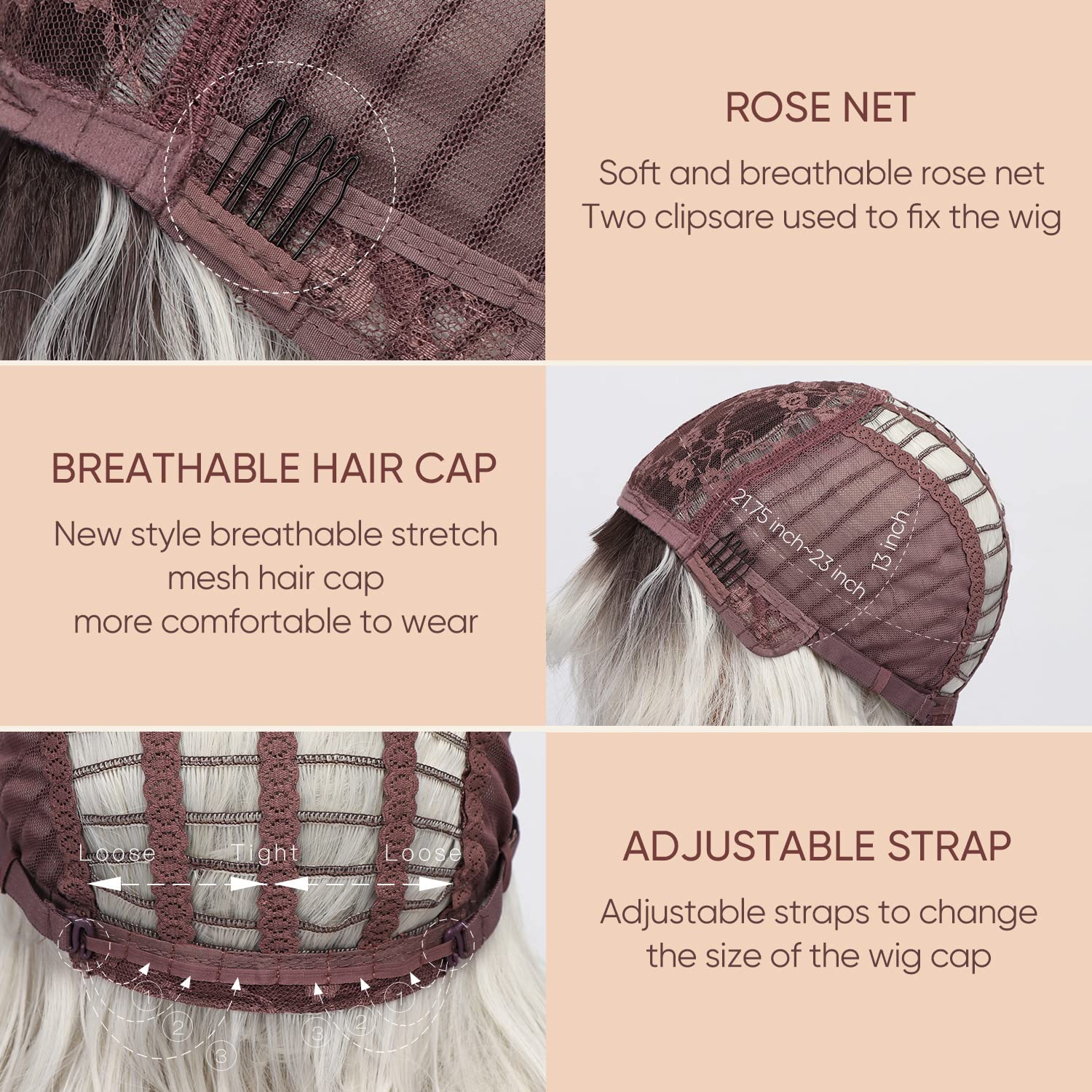 ❤【Cap and Size】The circumference of the hat is 22-23 inches, Breathable and Adjustable, This short ombre silver bob wig fits most head sizes and shapes, Easy to Install, Easy to take off.Suitable wigs for white women and black women.