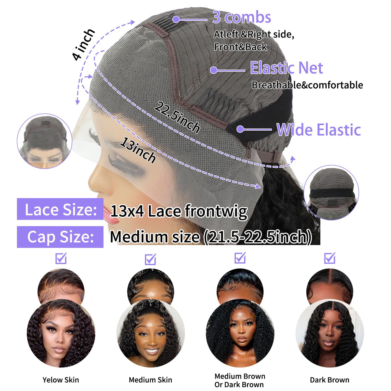 Human Hair Wig Cap Size: Average Cap Size About 22.5 Inch with Elastic Band, Adjustable Straps and 4 Combs, It Can Match Your Head Perfectly, You Will Feel Like Your Own Hair. Suitable for Daily, Party, Occasions, Cosplay. Gifts for Mother’s Day, Women’s Day, Birthday, Halloween.
