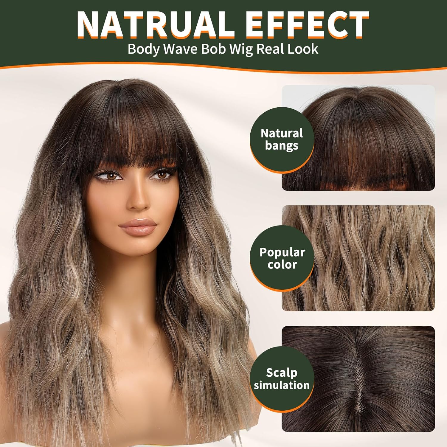 💞Premium Material: Short wavy bob end straight hair,short wig 100% High Quality Heat resistant fiber short wavy wig, natural wigs with bangs for women; as real hair, soft touch and Pretty Looking,no glue.Perfect for long term use.