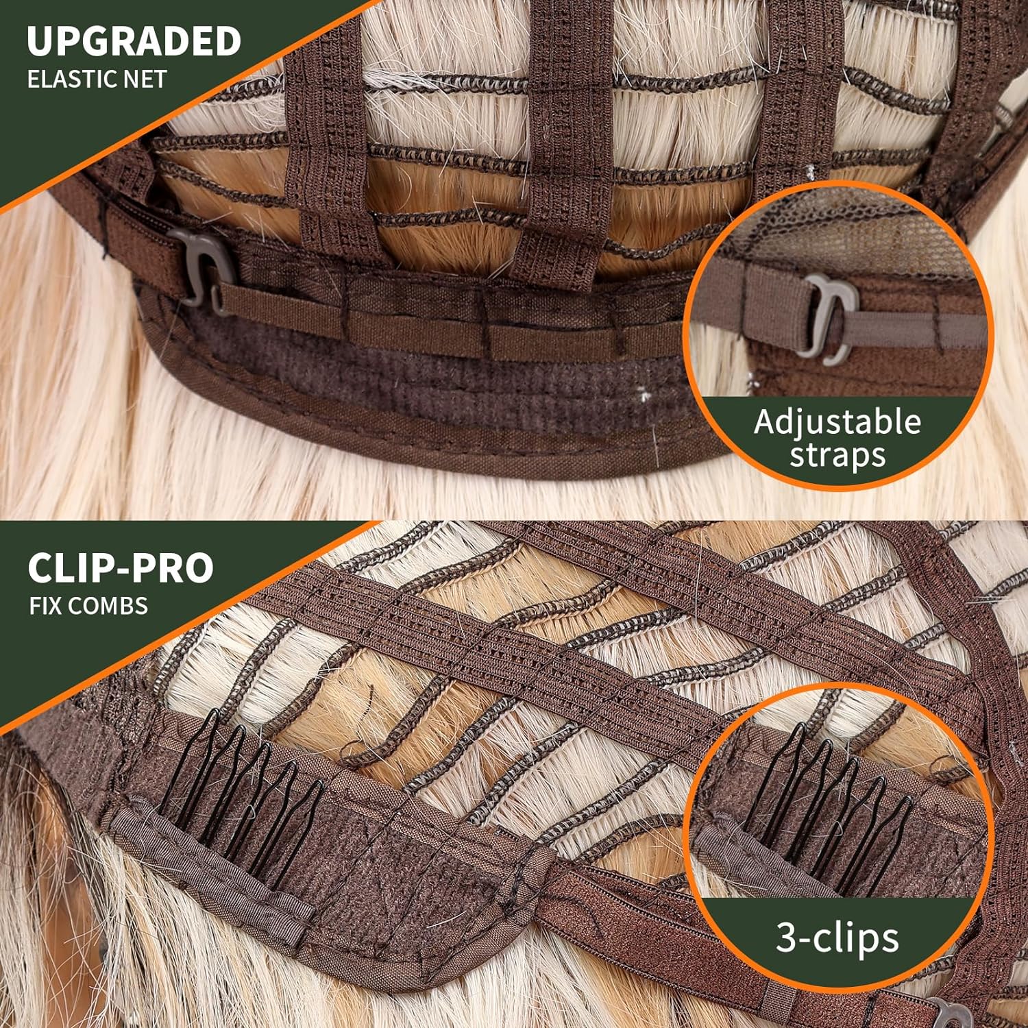 💞Cap Structure: Medium cap size(22.5 inch), with two adjustable strap and a comb,fits most women’s heads,easy to install.Cap internal is used open-welf structure and Soft breathable net,short wig with bangs is more comfortable to wear.