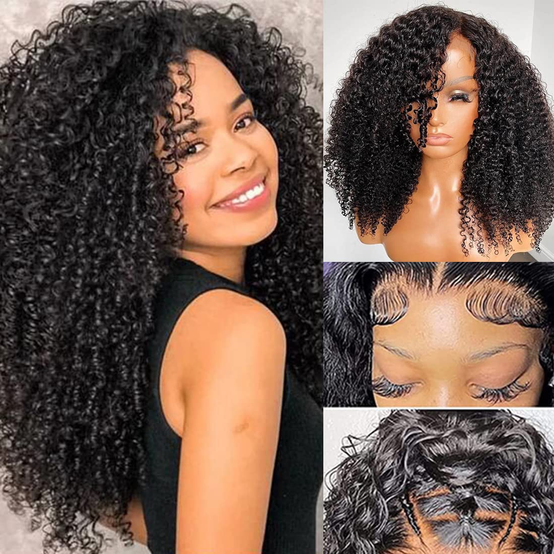 【Kinky Curly Lace Closure Wig Features】180% Density Human Hair Wigs Full and Thick, True to Length and Density . Average Size Cap(21-22.5) Circumferences Inch , Kinky Curly Wig With Elastic Straps and 4 Combs, Easy to Adjust & Durable.