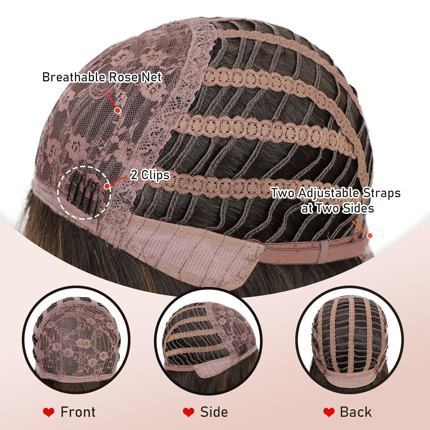 【Premium Material】:Light brown wigs for women,the wig is made of high-quality heat-resistant synthetic fibers. Natural looking through the improvement of traditional technology,it is not only heat-resistant and durable, but also makes your hair look more natural, soft.