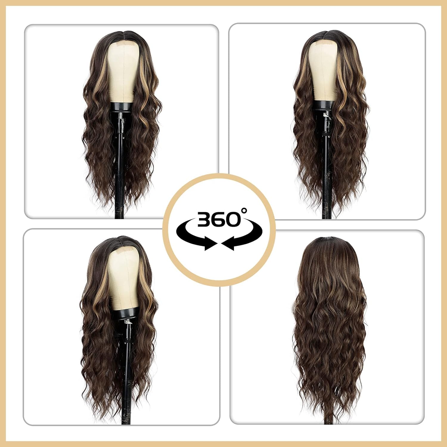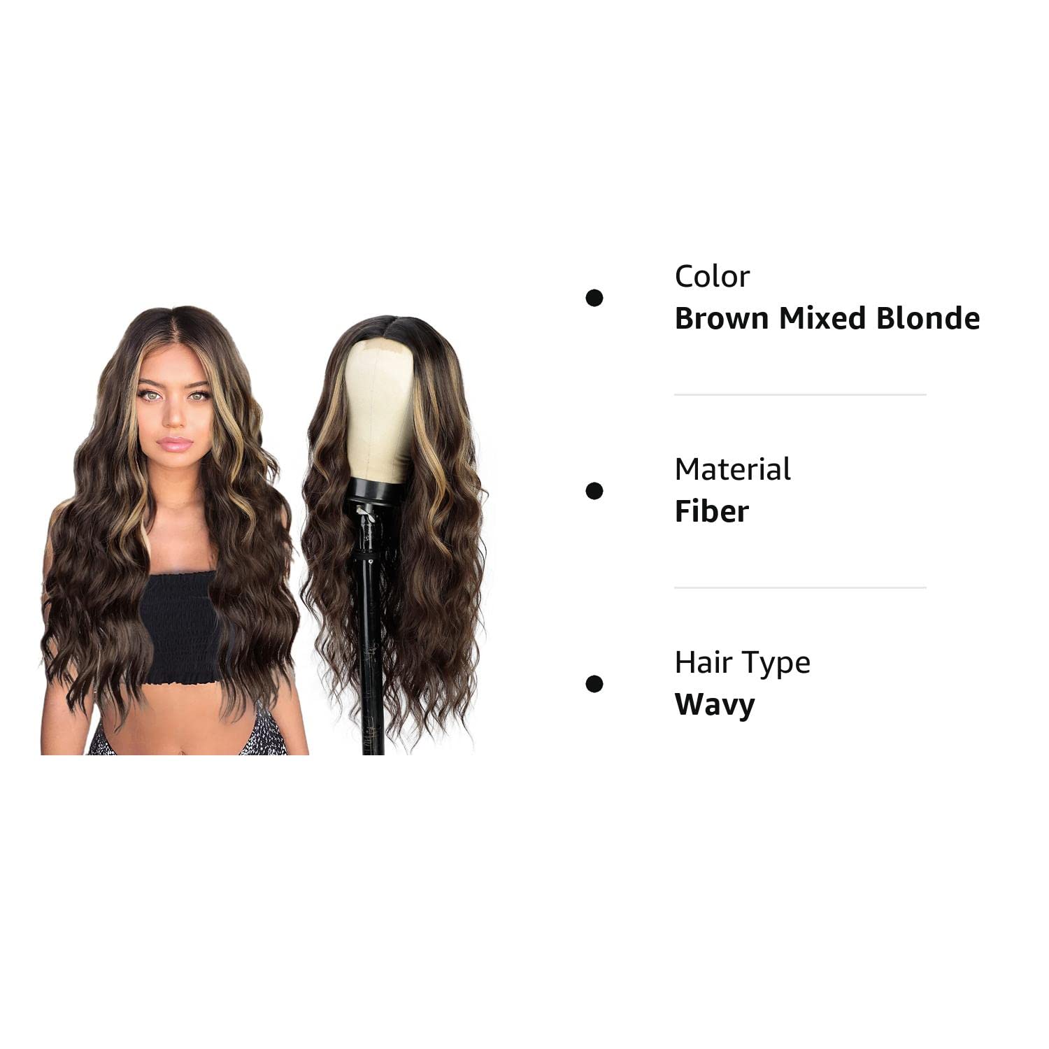 N NAYASA Long Wavy Middle Part Wig for Women Synthetic Curly Wigs Natural Wavy Heat Resistant Wig for Daily Party Use (Brown Mixed Blonde,24inch)Create a new description for this product from the title with 500 characters