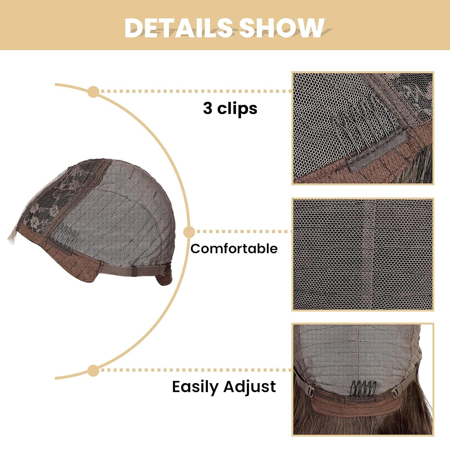 【Adjustable Cap】:Ombre Wavy Wig Cap size is medium size. Average adjustable and breathable wig caps are matched with different sizes of heads.
