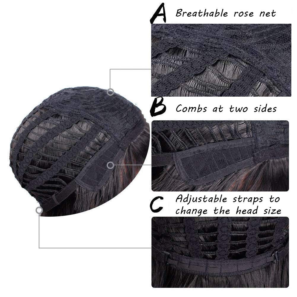 【Adjustable Size】about 21″-23″.There are 2 adjustment straps and 2 combs inside the ombre red wavy wig,you can adjust the hook inside the cap to the correct size to suit your head.
