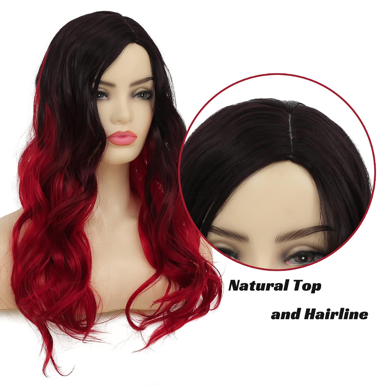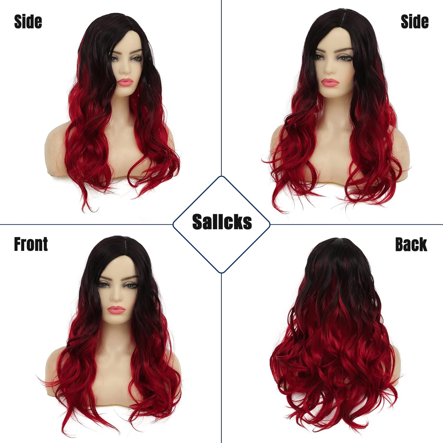 Sallcks Ombre Black to Red Wig Long Wavy Wig for Women Side Part Colored Synthetic Heat Resistant Wig for Daily Party Costume HalloweenCreate a new description for this product from the title with 500 characters