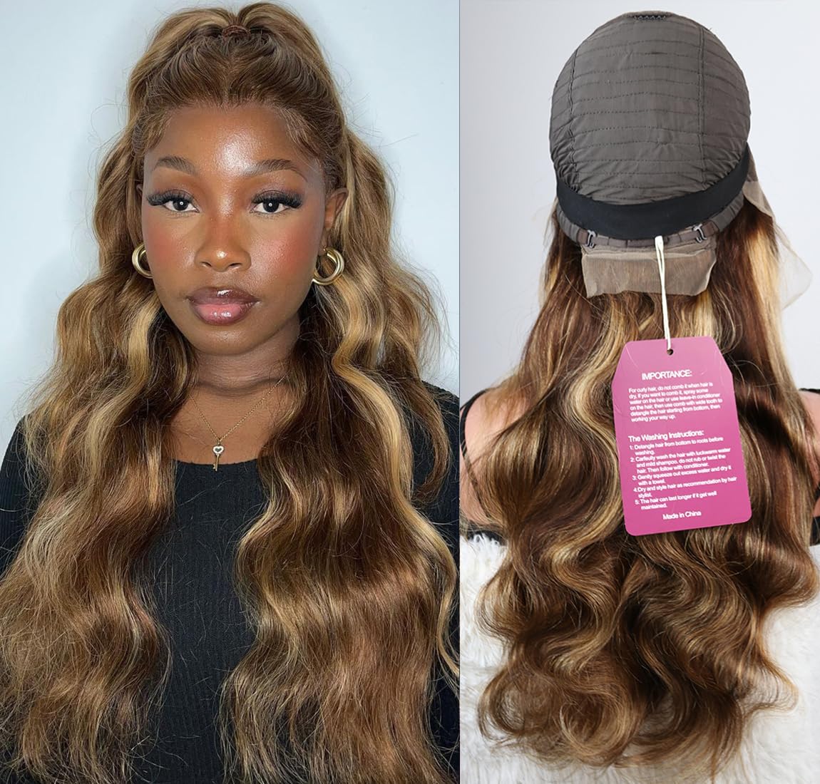 【Cap Size】: Our Body Wave 13×6 Highlight Lace Front Wig Human Hair Cap Size is 22.5 inches. Adjustable Strap Available. Elastic Band Attached Can Fit Different Head Size.